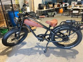 With chunky Kenda fat tires, comfortable saddle seating, and a matte black and brown leather-style finish, this e-bike is built for both looks and performance. Whether you're commuting, cruising through trails, or just enjoying crisp autumn rides through the park, this bike delivers comfort, power, and timeless style.